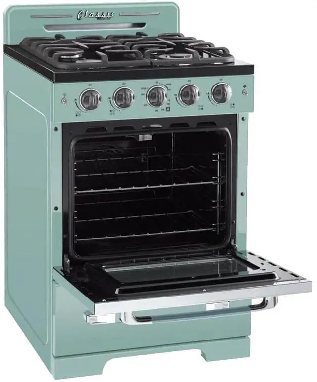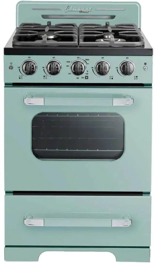 Smaller spaces deserve to make a big impact, and this 24 Classic Retro stove packs a lot of design punch. Its the perfect addition to your 50s-inspired kitchen, whether at home, the cabin, or anywhere youre looking for a more compact cooking appliance.