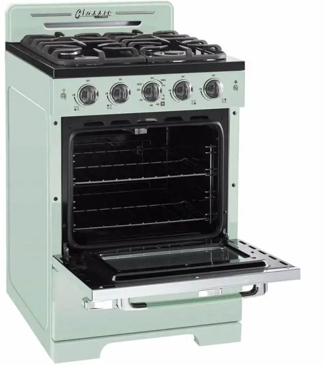 Smaller spaces deserve to make a big impact, and this 24 Classic Retro stove packs a lot of design punch. Its the perfect addition to your 50s-inspired kitchen, whether at home, the cabin, or anywhere youre looking for a more compact cooking appliance.