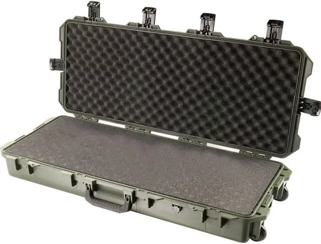 The Pelican iM3100 Storm Case is an injection-molded case made of HPX high performance resin, that is virtually unbreakable, dent-resistant and shatter-resistant. It is tough, rugged, lightweight, airtight and watertight. There is a permanently attached Vortex valve that automatically adjusts air pressure without letting in water, and won''t unscrew from the case. Press & Pull latches open with the push of a button, yet stay closed securely under impact or stress. The case has unbreakable molded-in hasps that allow the addition of standard size padlocks. It has hinges with integrated feet that hold fast under impact, and create a flat surface for upright stability. It is carried by a double-layered, soft-grip, solid-core handle that provides strong, durable comfort. This case has a multilayer foam bottom and a convoluted foam pad in the lid.