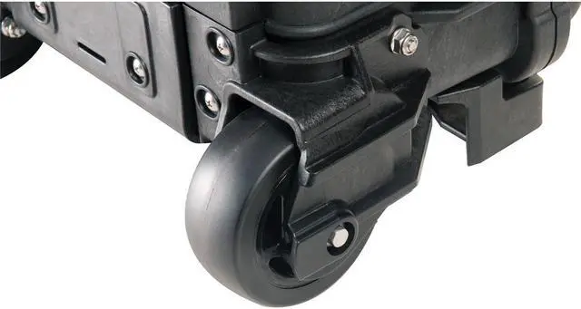 The case features a mobility kit, complete with a retractable extension handle and a built-in dolly system. The 4" polyurethane wheels, equipped with stainless steel ball bearings, ensure smooth and effortless transportation, even across rugged terrains.