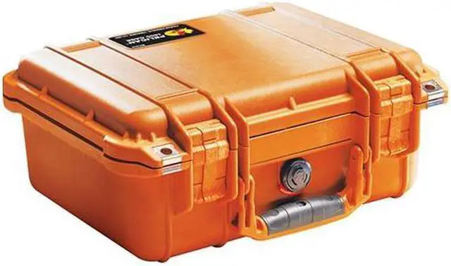 Be assured of unparalleled protection for your valuable electronics with the 1400 Watertight Hard Case with Foam Insert in vibrant orange. This rugged and durable case, a product of Pelican's commitment to quality, is designed to be unbreakable, watertight, airtight, dustproof, chemical resistant, and corrosion proof, offering comprehensive protection for your equipment in any environment.