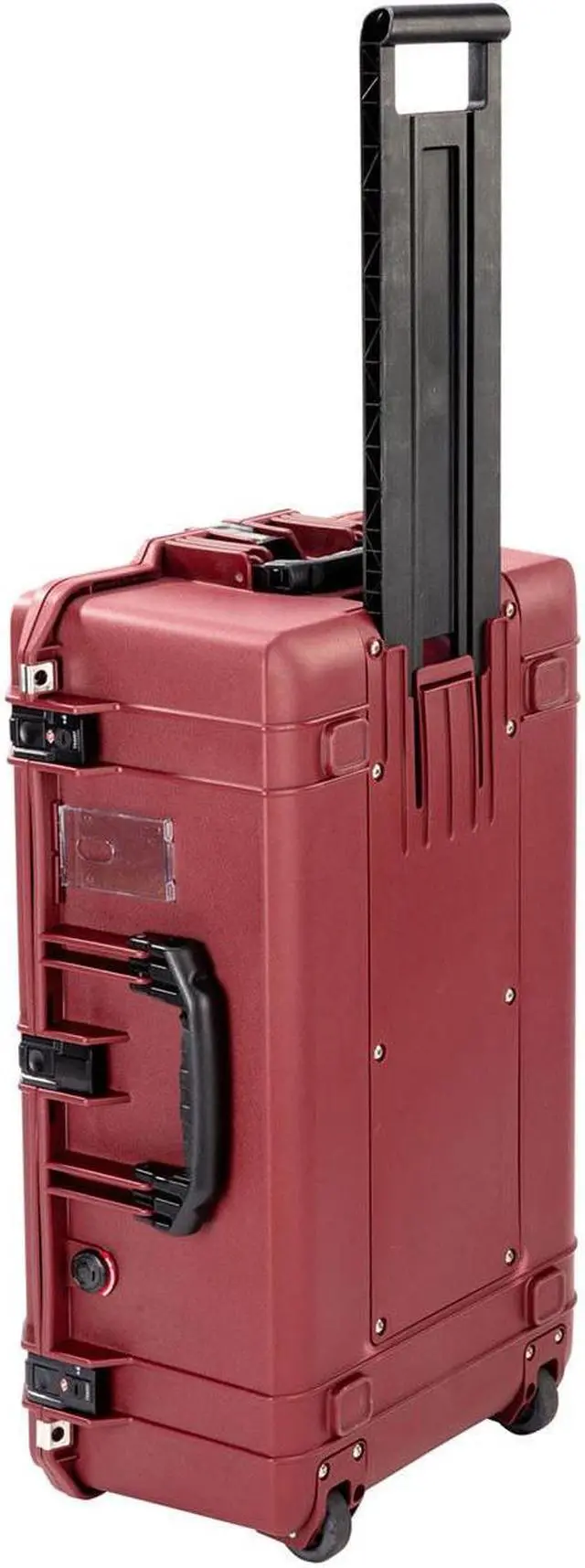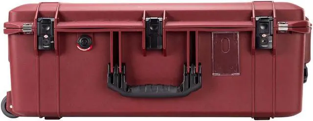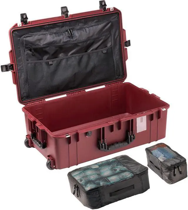 Explore the ultimate in travel convenience and protection with the Pelican 1595TRVL Wheeled Waterproof Air Travel Case in striking Oxblood. Designed to revolutionize your travel experience, this robust case ensures your belongings are organized and secure, whether you're navigating bustling airports or setting up at remote base camps. The intelligently designed lid organizer features zippered compartments perfect for larger items, while see-through mesh pockets provide easy access to essentials like passports and cables, keeping them safe and visible.