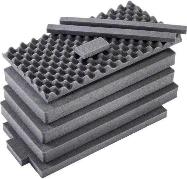 The foam set is an easy do-it-yourself system for customizing the interior of your case. Layers of foam are pre-scored in tiny cubes. Simply lay your equipment on the foam, tape or chalk to mark the foam, and pluck away. Always allow at least one inch of foam between your equipment and the wall of the case. f
