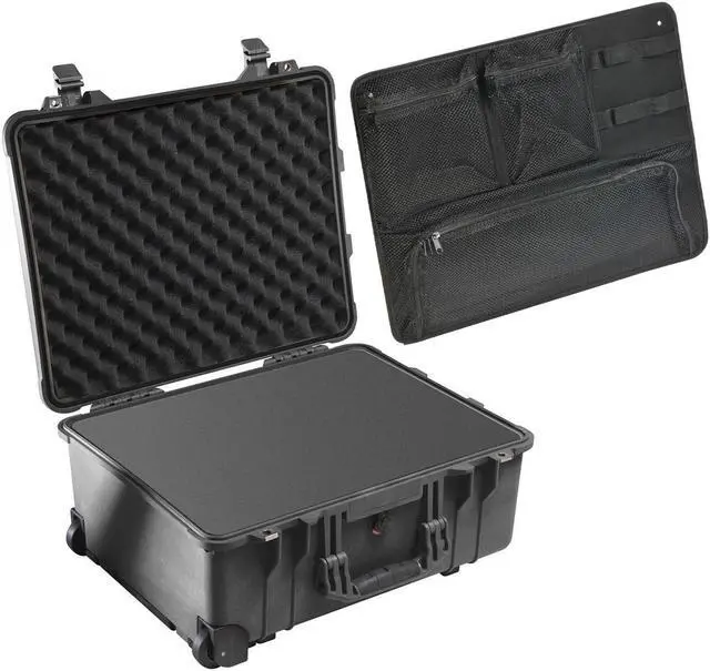 Experience unparalleled protection and convenience with the Pelican 1560 Watertight Wheeled Hard Case with Foam Insert, Black, bundled with the PC1569 Lid Organizer. This robust hard case is designed to withstand the harshest conditions, offering watertight, airtight, unbreakable, dustproof, chemical-resistant, and corrosion-proof features. With over 2,800 cubic inches of storage space, it provides ample room for your valuable equipment, ensuring they remain safe from the elements.