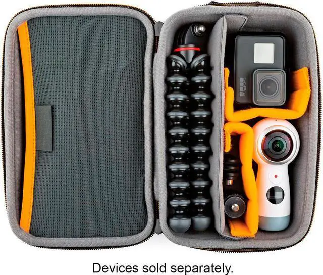 EVA FormShell exterior provides rugged protection. Removable interior dividers and stretch pocket deliver customizable organization for devices, cords, cables and lens caps. Double zipper closure offers quick access to gear.