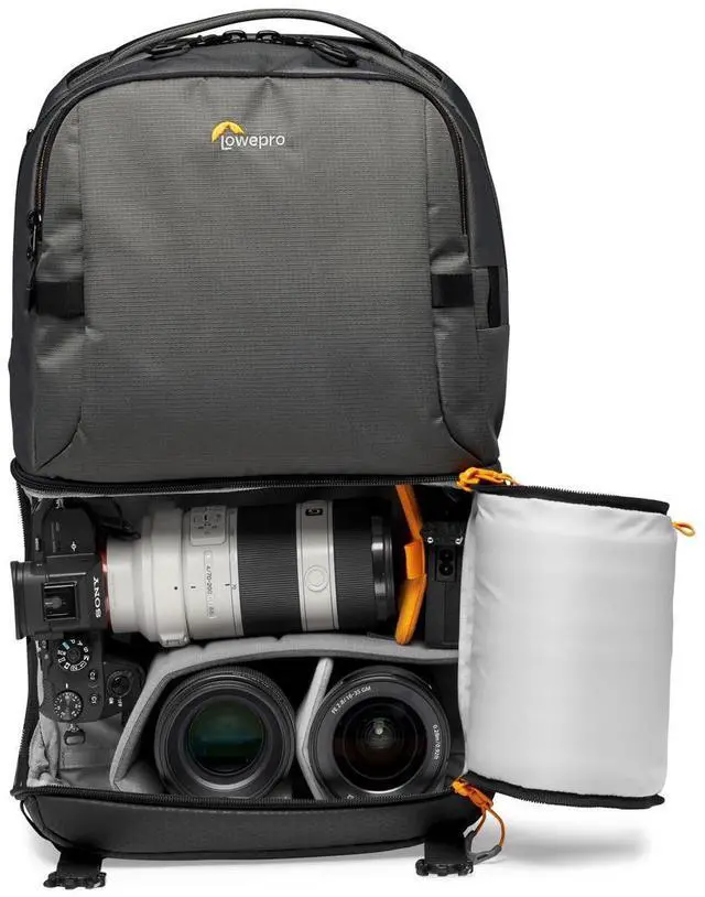For added protection, the backpack features an exterior PU coating for weather and abrasion resistance, along with an included All Weather AW Cover. The QuickDoor feature and molded EVA camera divider system simplify access to your gear, including a trapdoor divider for added convenience.
