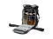Inside the back door, you'll discover zippered transparent organization pockets, perfect for storing accessories, along with a CradleFit laptop pocket that accommodates up to a 14'' MacBook Pro. The side doors boast large exterior stretch pockets, capable of holding up to a 1L bottle, reinforced at the bottom for added tripod support. Additional loops and pockets on the top of the sides provide quick access to essential items and secure tripod attachment. The backpack's ability to stand upright on its own enhances handling and accessibility.