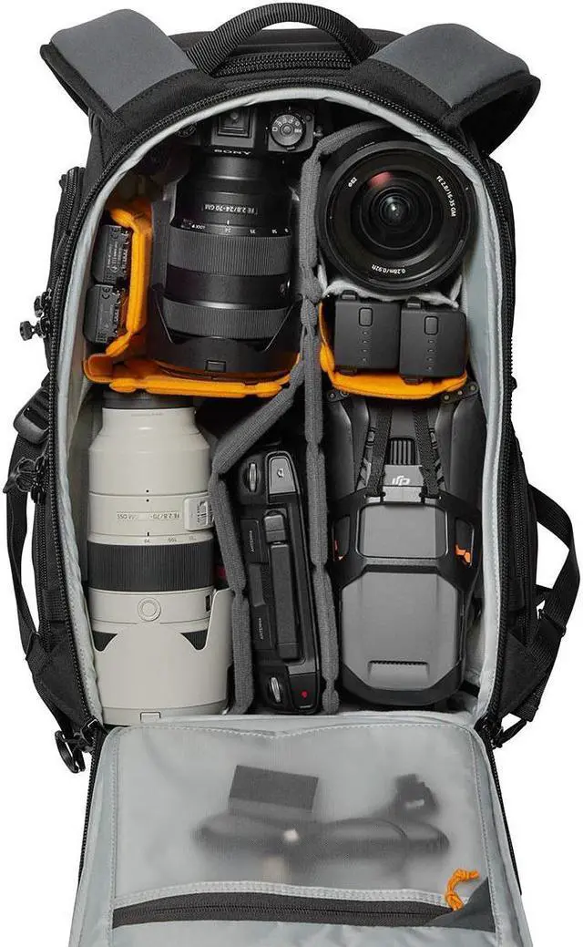 Engineered for adaptability, the ProTactic BP 350 AW III offers four strategic access points, ensuring you can swiftly reach your gear in any situation. The dual side doors provide quick access without the need to remove the backpack, making it exceptionally convenient for both left and right-handed users. The wide top access is tailored for longer telephoto lenses, allowing you to effortlessly retrieve your setup without unzipping the entire bag. For comprehensive gear organization, the full back access is ideal, accommodating assembled video rigs or allowing you to neatly arrange your equipment for easy access through the other doors.