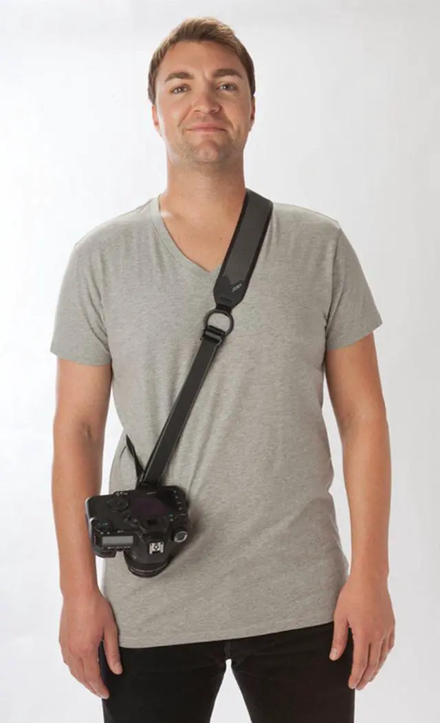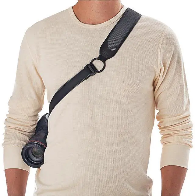The new JOBY UltraFit Sling Strap is optimized for on-the-go photographers, with a quick-draw style strap that combines body-conforming ergonomic comfort and hands-free stability. The patent-pending design is built with JOBYs exclusive UltraFit Layered-Pad Technology for lightweight support evenly distributing the weight of the camera without the bulk of thick padding. Created with a custom heat press process, the ergonomically optimized sling strap versions for men and women provide long-wearing comfort with soft to the touch materials. The integrated SpeedCinch system provides hands-free stability by securing the camera close to the body for extra mobility and camera protection when shooting on-the-go.The UltraFit Sling Strap is designed for use with DSLRs and CSC cameras. It can accommodate cameras with zoom lenses, battery grips flashes, etc. We've tested the strap with over 100 lbs of weight and it still did not break; it will support even the heaviest DSLRs with battery grips and zoom lenses.UltraFit Layered-Pad Technology and ergonomically placed pivot ring allow the strap to conform to the body for ultimate comfortSpecifically designed for menStrap extends so that your camera glides up from your side to shooting position in secondsSleek design and high-tech, neutral colored materials provide a versatile style that is perfect for any occasionMade of ultra-lightweight materials, it easily compacts to take up very little space in your bagExternal Dimensions: 2L x 0.14W x 70H in. (5.08 x 0.36 x 177.8 cm)