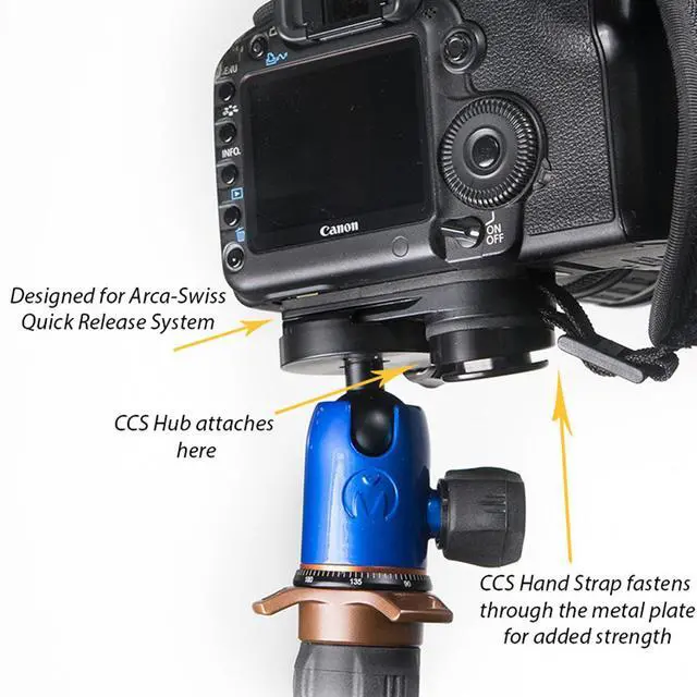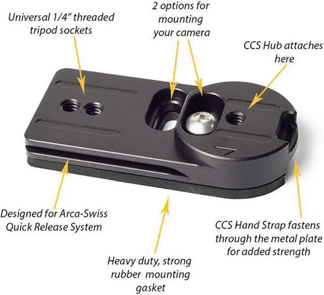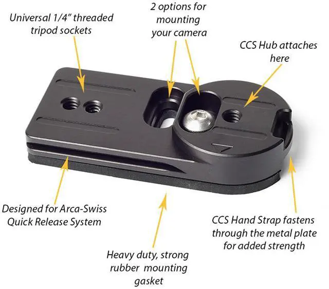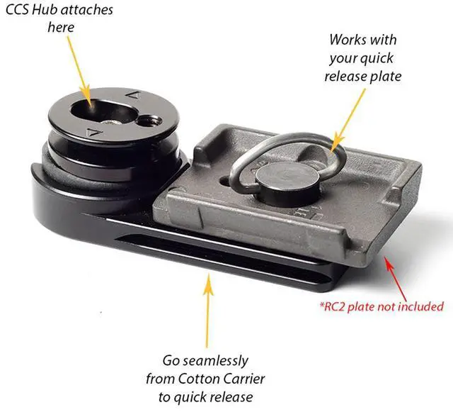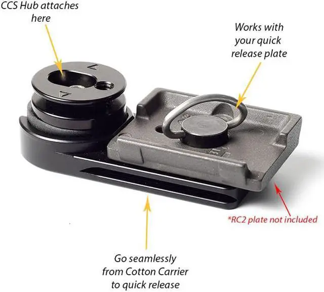 The Cotton Carrier Universal Adapter Plate is intended for most users of any tripod mounts. Once you have attached your tripod's quick release plate to the plate, you can switch easily between your tripod and your Cotton Carrier Camera Vest or Side Holster only using the Camera Hub that you already own.