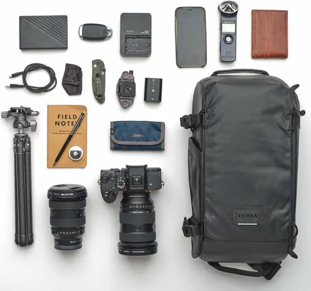 For those requiring more space, the 16-liter variant can house a mirrorless or DSLR camera with 4-6 lenses, supporting a camera and lens combo up to 17 inches (43 cm) in length. It fits lenses such as the Sony 200-600mm, Canon 200-400mm/200-800mm, Nikon 180-600mm, and Tamron/Sigma 150-600mm. This model also accommodates a tablet up to 8 inches, such as an iPad Mini, and is perfect for transporting DJI Mavic and similar compact drones.