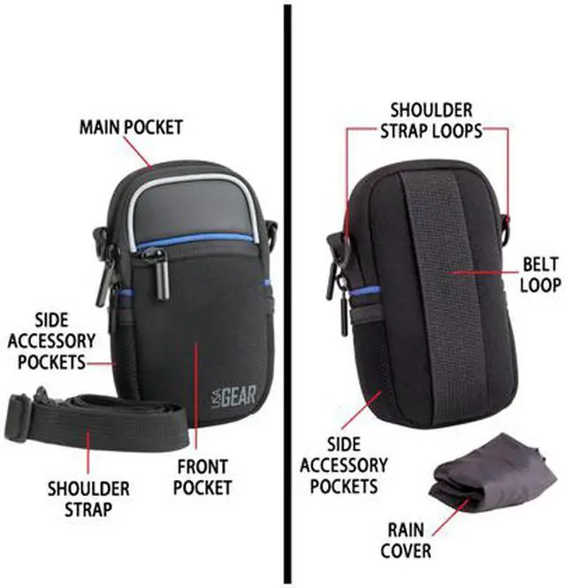 USA GEAR QCD Camera Bag. Weather Resistant Construction - The QCD’s weather resistant neoprene exterior protects your device while keeping a sleek and professional look. Covered zippers and neoprene materials allow the case to repel moisture , dirt , dust , sand and snow. Take the case to the next level of protection with the included rain cover which wraps around the case and can be used with the shoulder strap or belt loop. Cushioned Protection and Storage - The neoprene material offers impact resistant cushion padding for your device. The interior features a scratch-resistant tricot lining to keep your camera looking like new. The multiple pockets are built to hold batteries , cables , memory cards and other small accessories. Durable Hardware - All the hardware on the QCD is made from metal , no plastic zippers or buckles here. The included adjustable shoulder strap is easily connected to the metal D-rings on the case. Includes 3 Year Manufacturer’s Warranty. Works With: - Olympus Stylus - 1s , SH-1 , SH-2 , SH-50 iHS , SZ-12 , SZ-15 , SZ-16 iHS , VG-190 , VH-210 , VH-410 , VH-515 , VH-520 , VR-360 , VR-370 , XZ-2 iHS , XZ-1 , XZ-2 , XZ-10 - Tough TG-1 , TG-2 , TG-3 , TG-320 , TG-4 , TG-630 iHS , TG-820 iHS , TG-830 iHS , TG-850 iHS , TG-860 , TG-870. Pen E-P5 , E-PL6 , E-PL7…and many other cameras!