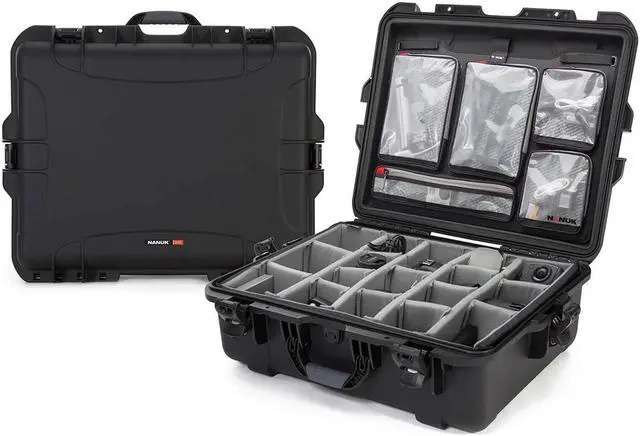 The case is constructed with an NK-7 resin body that's impact-resistant and lightweight. It's designed to withstand whatever nature throws its way, with shock-absorbent features to prevent damage to the case and its contents. The NANUK 945 case also features an automatic pressure release valve that prevents a "vacuum lock" caused by changes in altitude, temperature, humidity, and geographic location. The micro vent technology allows air to pass through while keeping water out. Additional features include integrated lid stays that keep the case open when needed, and reinforced metal padlock holes for added security.