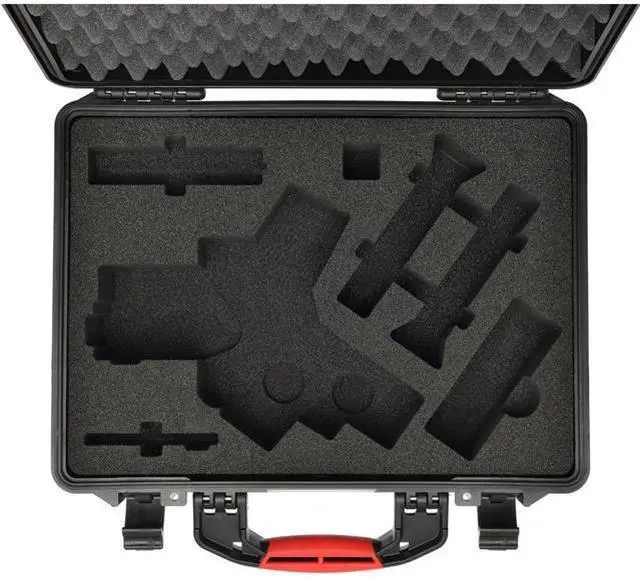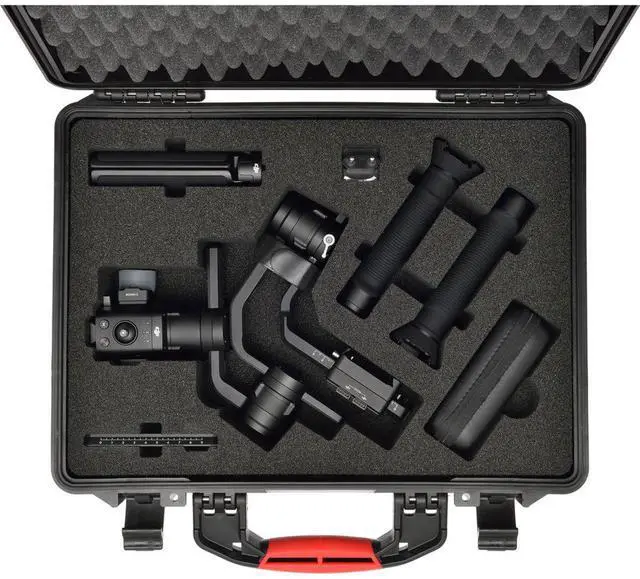 This watertight and waterproof hard case, based on the HPRC2500 series, is specifically designed to easily transport the DJI RONIN S. It features a pre-cut high-density foam interior that holds the gimbal and everything that comes in the box, guaranteeing their transport in one container, in complete safety. Thanks to the lightweight and to the ergonomic handle, as well as resistant, the case is also very handy. Carry-on approved size. The case is impact, drop and corrosion resistant and features a neoprene seal that, when properly closed, keeps the case watertight and your gear protected even if submerged in shallow water.