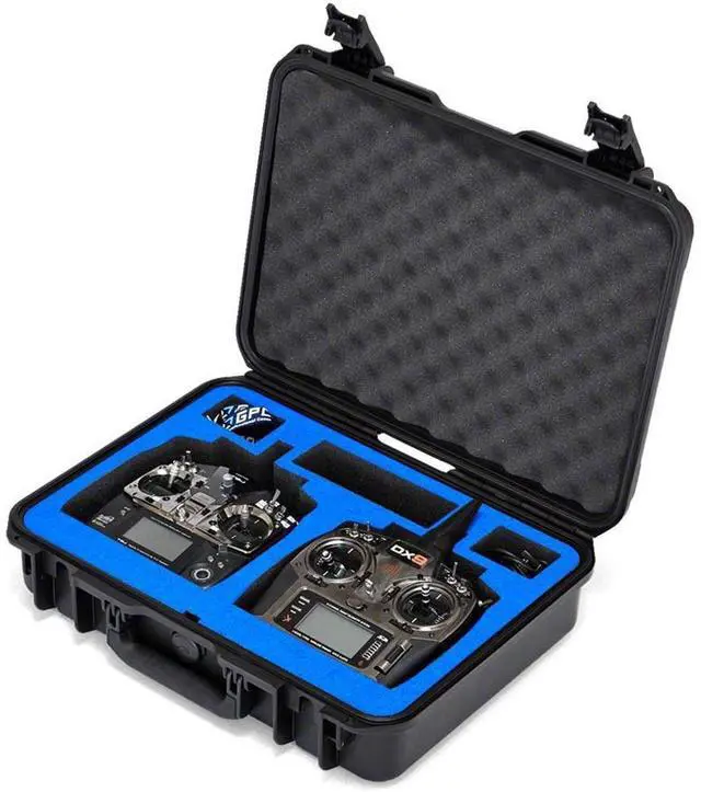 The Universal Double RC Transmitter Case is a watertight, crushproof case that stores RC transmitters in an easily transportable, compact shell. Go Professional Cases custom blue foam insert accommodates a variety of transmitters on the market, including Spektrum, Protek and more.