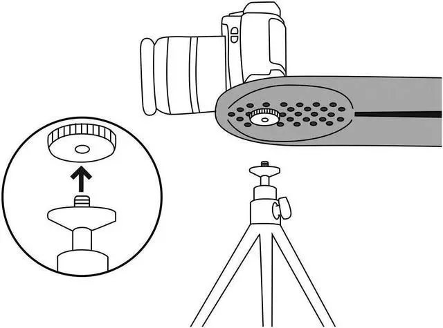 The multipurpose nickel-coated steel screw serves as a secure connector to the 1/4"-20 tripod socket on your camera body, allowing you to connect a tripod even when the Miggo Strap & Wrap is attached. A designated flexible pocket is thoughtfully designed to carry a lens cap when it's not in use.