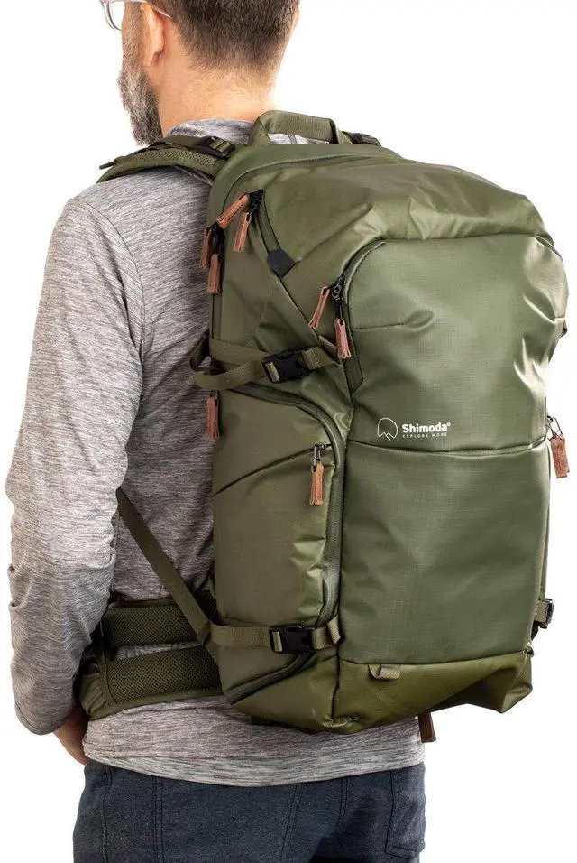 The Explore V2 35 is Shimoda's largest landscape-specific adventure pack. Built for photographers who want to venture into demanding locations but also need to travel globally just to start an adventure. Its size meets U. S. and some international carry-on regulations, so creators can ensure key photographic equipment makes it onboard. The E35 was built to pack Mirrorless and DSLR cameras, even those with a vertical grip, and the pack is stocked with numerous travel smart features ensuring your adventures go as smooth as possible. Lockable zippers, a hidden passport pocket and a luggage pass-through handle compliment the adventure-driven comfort and durability.