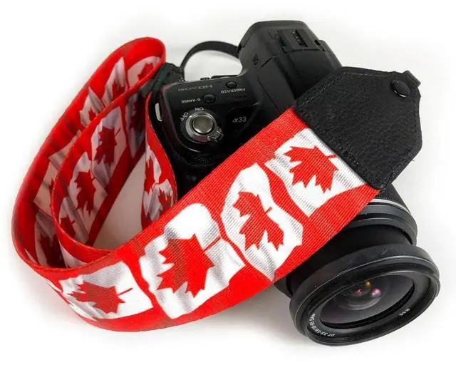 Enhance your photography experience with the CSP-13 Polyester Camera Strap, adorned with the vibrant Canada Flag design. This stylish and durable camera strap, crafted by Perri's Leathers, is a versatile accessory compatible with most camera types, including popular brands like Canon, Nikon, Sony, Olympus, and Fuji.
