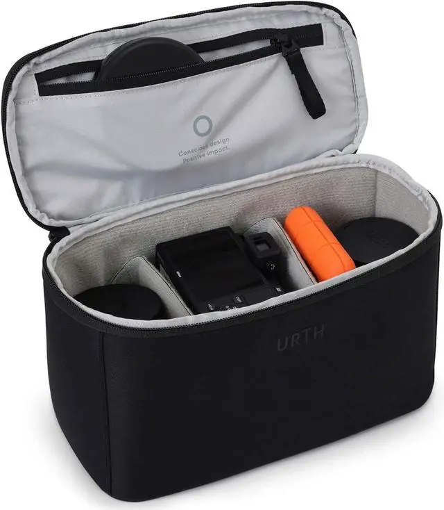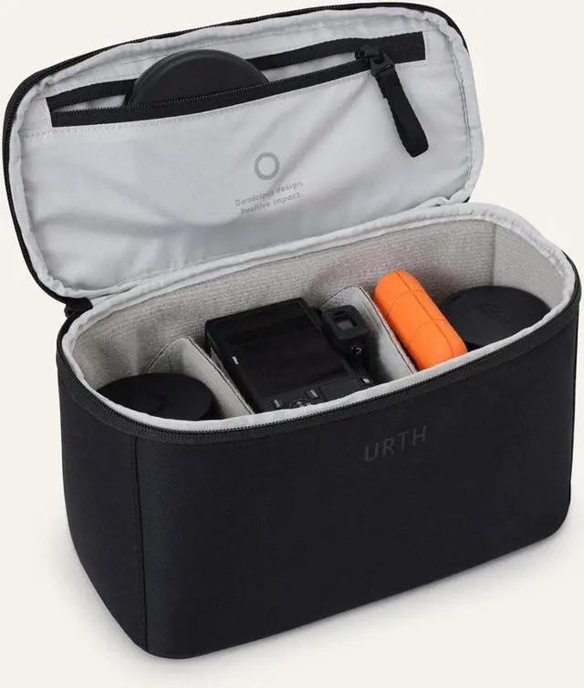 The Small Camera Insert, designed to fit snugly in the lower compartment of the 20L backpack, provides ample space for a DSLR, a lens, a filter kit, batteries, and memory cards. With its padded outer shell, your gear is well-protected from any bumps or knocks on your journey.