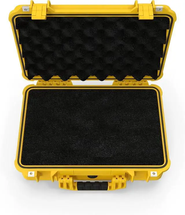 Weight with foam: 7.94 lbs ( 3.6 kg). The perfect compact size offers full protection for most mid-sized DSLR/mirrorless kits with lenses or serves as an excellent case for drones, audio gear, tools, or other valuables requiring serious protection.