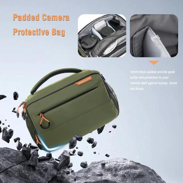 Small Camera Bag for Photographers,Compact Camera Shoulder Bags for DSLR/SLR/Mirrorless Cameras,Waterproof Crossbody Padded Photography Bag with Rain Cover for Canon/Nikon/Sony, Army Green