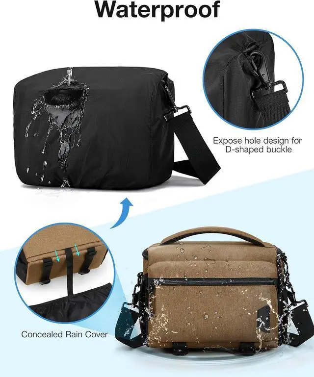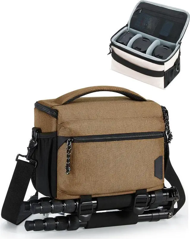 Small Camera Bag for Photographers, Compact Camera Shoulder Bags for DSLR/SLR/Mirrorless Cameras, Waterproof Crossbody Camera Case with Tripod Holder, Khaki