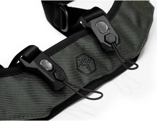 The strap comes with Squid Links, rapid-connect couplers that allow you to swiftly and securely attach your gear to the strap. The Squid Link system is comprised of a receiver mechanism and a small lanyard attached to a fob that magnetically pairs to the receiver and locks into place. This system can hold a load of up to 44 pounds, ensuring your gear is always safe and secure.