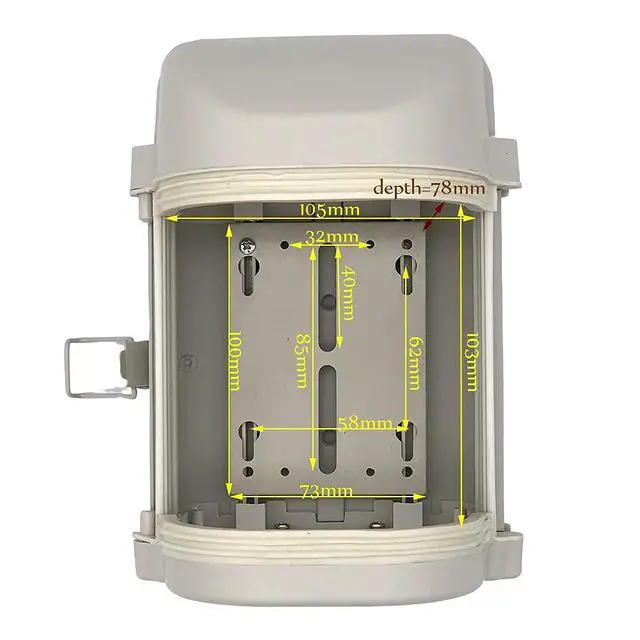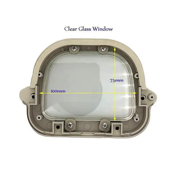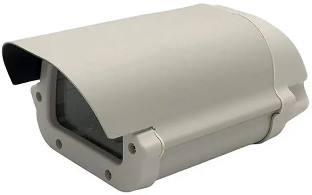 6 inch waterproof outdoor Aluminium CCTV enclosure housing camera casing with lock and clear glass window without a lens cutout . This Aluminum outdoor housing is suitable for all kinds of Box Camera. Color: beige White Material: Aluminium Alloy Outer Dimension: 240mm x 135mm x 100mm Casing Net Weight: around 570 gram You can locate max 60mm lens.( lens is not included)