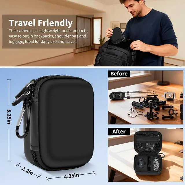 This case is specially designed for most popular thumb-size cameras including for Meoilkolnm, for Sixmou, for Catchallway, for Intepoll, for Losfom and other models about 2.5 inches long. The custom foam insert can be trimmed for a snug fit.
