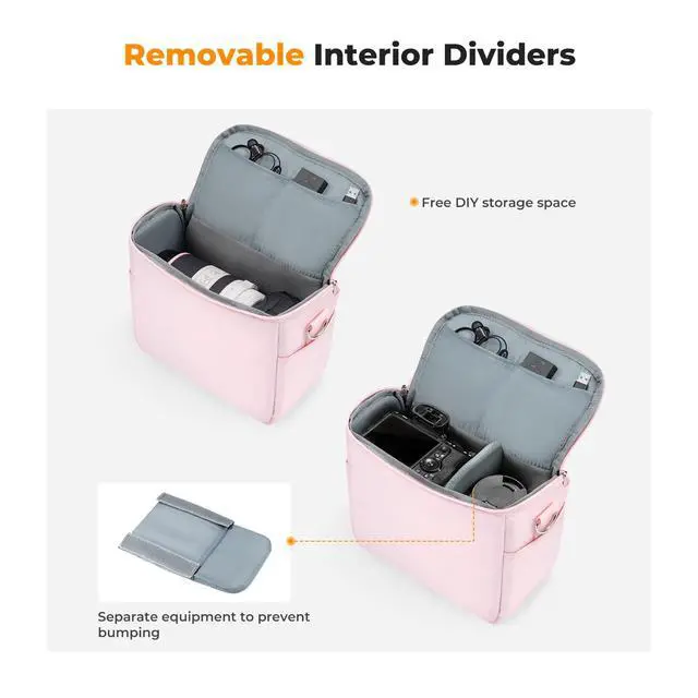 MULTI-PURPOSE:This crossbody camera bag comes with 1 removable padded divider to for personalized storage. keep camera and others separated and protected, also enable you to customize main compartment for different size of camera equipment. After removing inner dividers, it can easily convert it from a dslr camera bag into a stylish everyday shoulder bag.