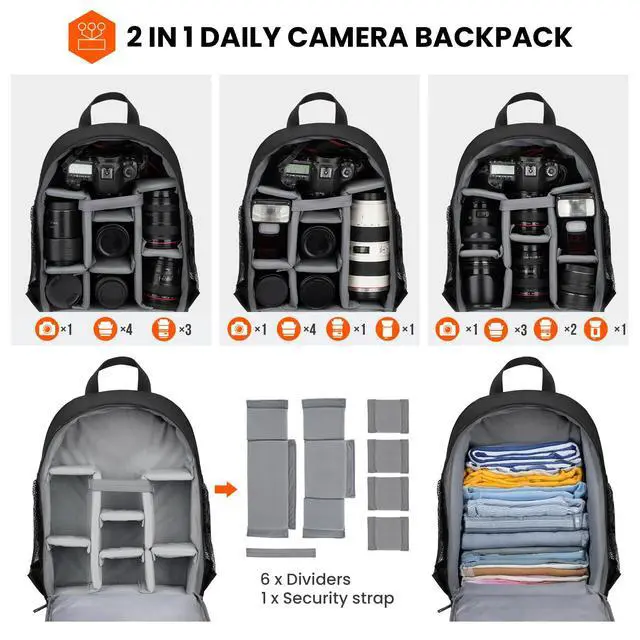 | Ultra-lightweight, Compact | Enough Capacity, Laptop Sleeve | Quick Side & Back Access | Slim body, Multi-pockets | Convertible Sling & Backpack | Removable Top Cover | Compact,Convenient,Lightweight |