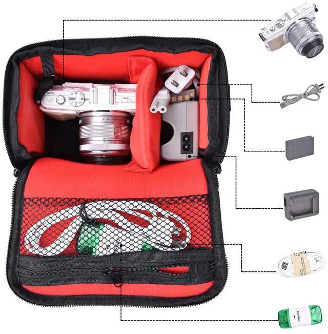 Offer room for your photography equipment such as cables,charger,lens filters,lens caps etc.