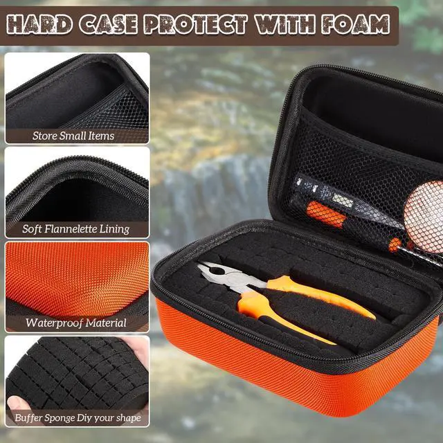 EVA Hard Case with Customizable Foam 11 x 7.8 x 4.3 Inch Protective EVA Carrying Case Shockproof Outdoor for Camera, Digital Products, Electronic Instruments with Knife, Orange