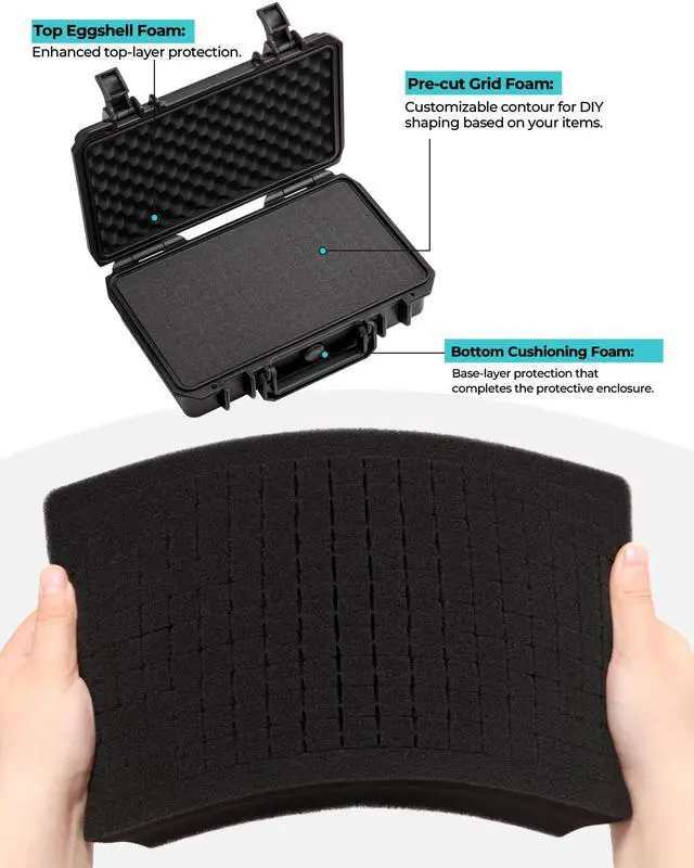 **Triple Layered Internal Defense**: Featuring a unique combination of egg crate foam, pre-cut grid foam, and bottom cushioning foam, this case provides comprehensive protection, absorbing shocks and impacts to keep your items secure