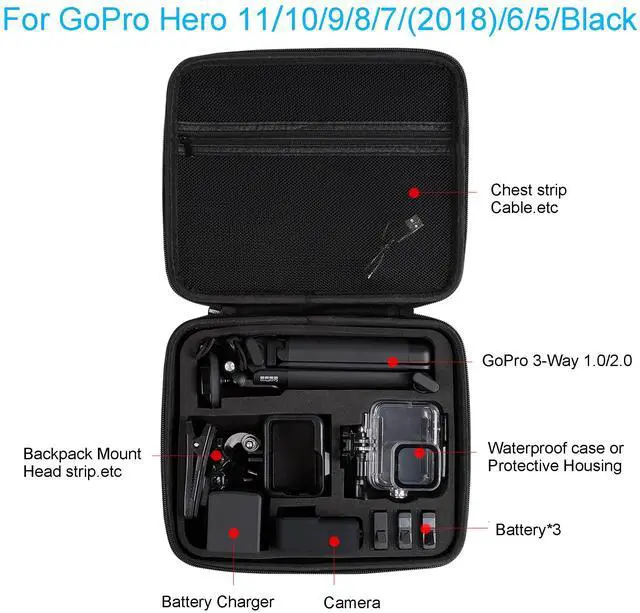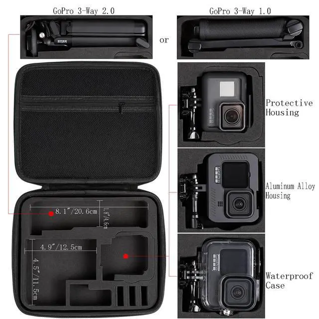 FITS SIZE: Stores your Gopro camera and case along with some other essential accessories. Keep your GoPro and accessories safe, protected and organized. Compact and easy to store in a backpack or carry-on, recommended for travel and home storage.