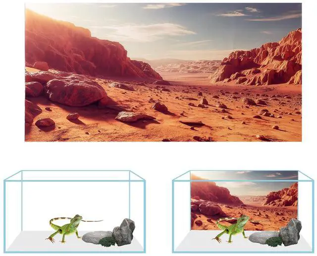 Vibrant Color: The terrarium background features bright colors and clear images. Terrarium backgrounds with vibrant and beautiful pictures can enhance the visual depth of the terrarium, add an extra look of realism to your terrarium, create a vivid life environment, and let pet friends stay active.
