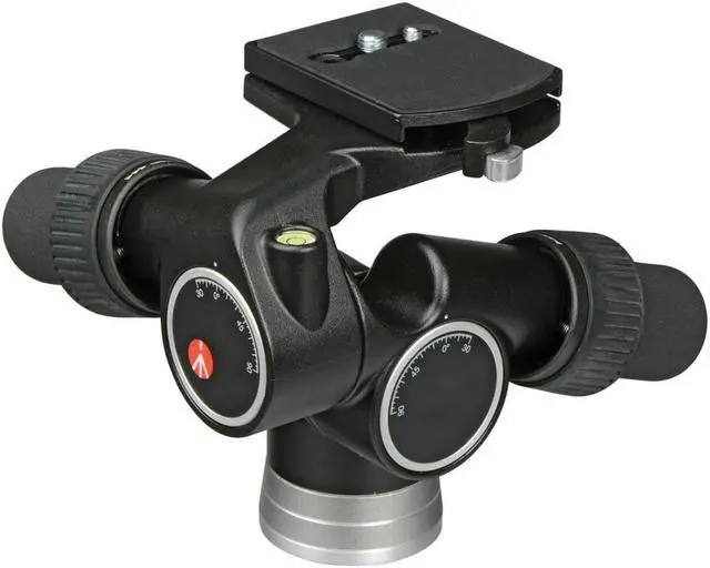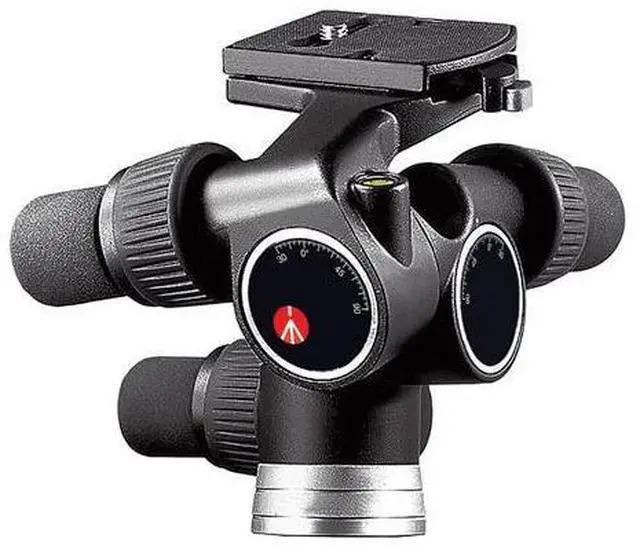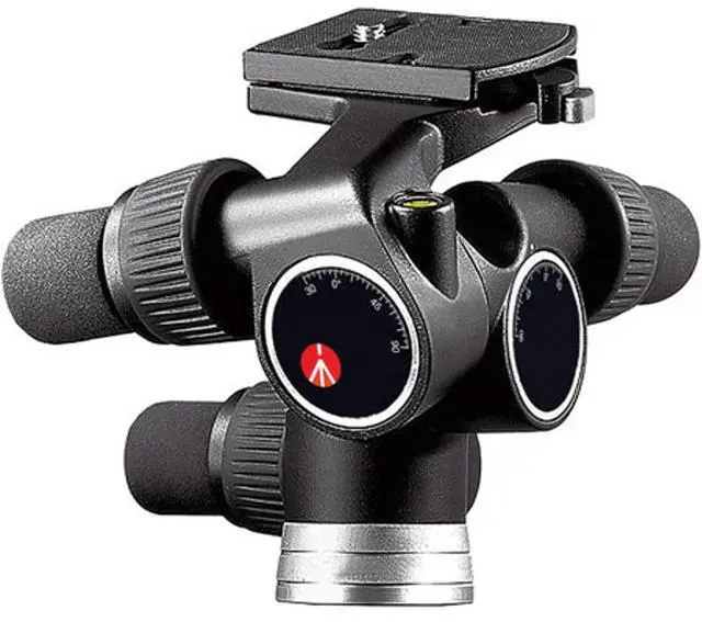When precision and control are paramount in your photography work, the 405 Pro Digital Geared Head with Quick Release from Manfrotto is an ideal choice. This professional-grade gear head is specifically engineered to cater to the demanding and time-sensitive requirements of professional digital photographers. It's perfectly suited for use with medium format or 35mm cameras, supporting payloads up to 16.5 lbs. The 405 Pro Digital Geared Head offers smooth, positive, geared control, facilitated by large, easy-to-grip knobs. These knobs ensure seamless 360-degree panning and a tilt range of +90 degrees to -30 degrees, both in the frontal and lateral directions.