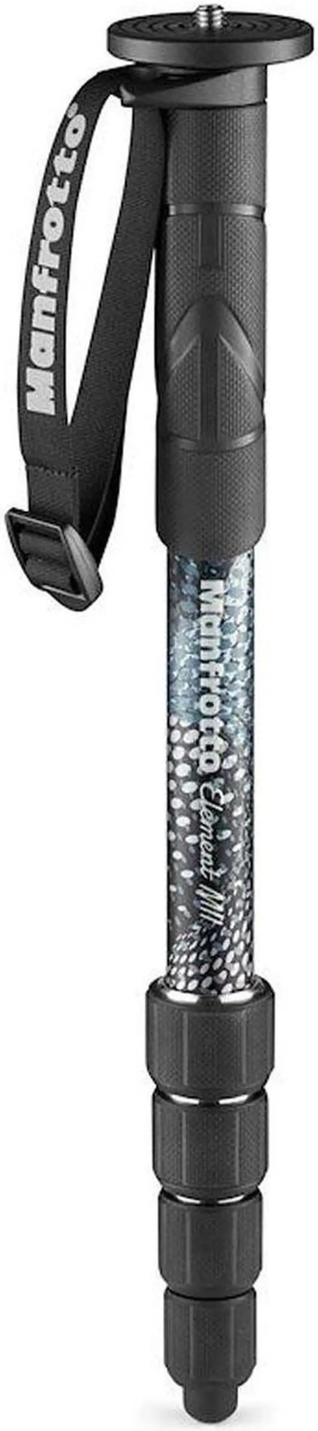 The Manfrotto Element MII Monopod Black is a compact, 5-section, aluminum support, perfect to be used with DSLRs, mirrorless, compact cameras and smartphones (using a head or a clamp sold separately). The Manfrotto Element MII Monopod Black holds up to 16kg, securely supporting long lens shooting. It is the best choice for sports, weddings, wildlife or any photography style requiring the combination of a small footprint and strong support. The reversible screw on top of the disc reveals a 1/4"- 3/8" thread for either securing a camera directly or for an optional Manfrotto head mounting.