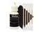 It includes: 5 cotton swabs, a bottle of cleaning fluid, a soft-tex fiber cloth