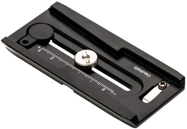 Just introduced, the Benro QR4PRO Quick Release Plate, a robust and reliable accessory for your S4PRO video head. Expertly crafted from CNC machined aluminum, this slide-in camera plate boasts a sleek, black anodized finish that not only enhances its aesthetic appeal but also increases its resistance to corrosion, ensuring long-lasting durability. Designed to perfectly fit both S4 and S4PRO video heads, the Benro QR4PRO offers seamless compatibility, making it an essential addition to your video equipment. The plate features laser-engraved markings, providing clear and precise guides for optimal camera positioning.