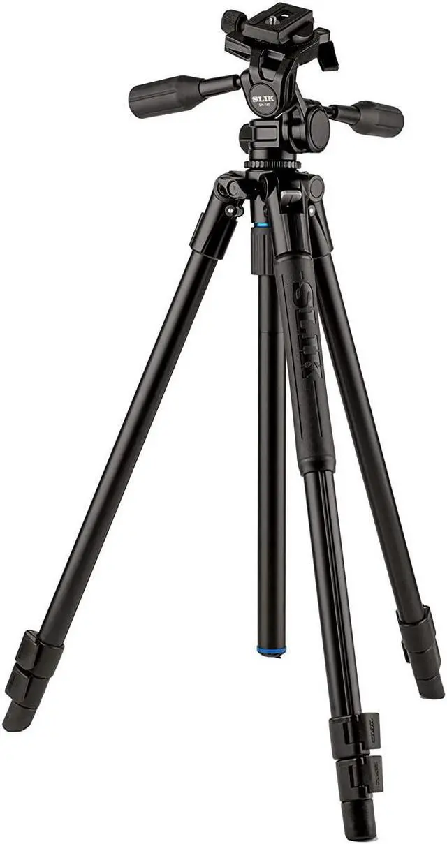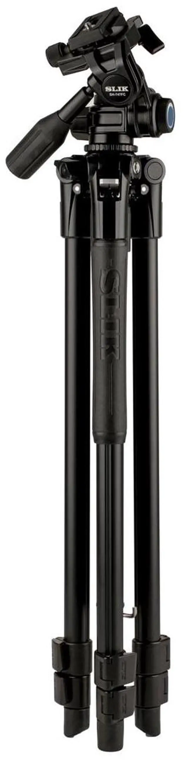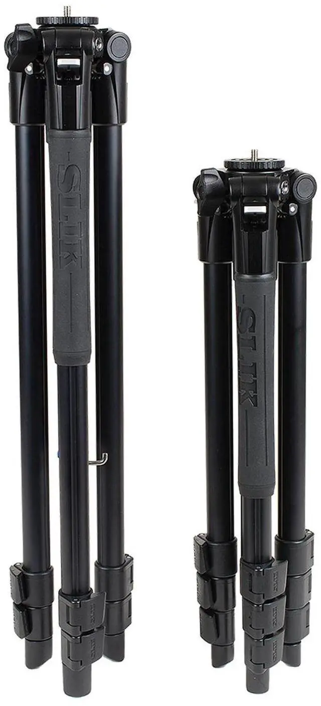 This feature is particularly useful for accurate framing, a task that can be challenging with ball heads. A pre-installed horizon leveling knob reduces the head's "travel profile, " making it easier to pack or attach to a backpack without worrying about the leveling handle getting caught on obstacles. The head attaches to all tripod legs using a 3/8' male thread post, and a 3/8" to 1/4 20" thread adapter is included for compatibility with legs using a 1/4 20" thread post, like Slik's Sprint Pro III series. In summary, the PRO AL-323-3W 3-Section Aluminum Video Tripod with SH-747 3-Way Pan Head offers a robust, versatile, and user-friendly solution for photographers and videographers of all levels.