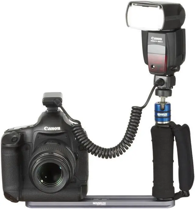 For professional photographers and enthusiasts alike, the Flash Bracket with Padded Grip, Strap, and Ball Head is an indispensable tool. This high-quality, durable bracket serves as an excellent base for any of Novoflex's advanced flash systems. Its design features a versatile track that can be effortlessly switched from left to right, ensuring an optimal setup for all types of cameras.
