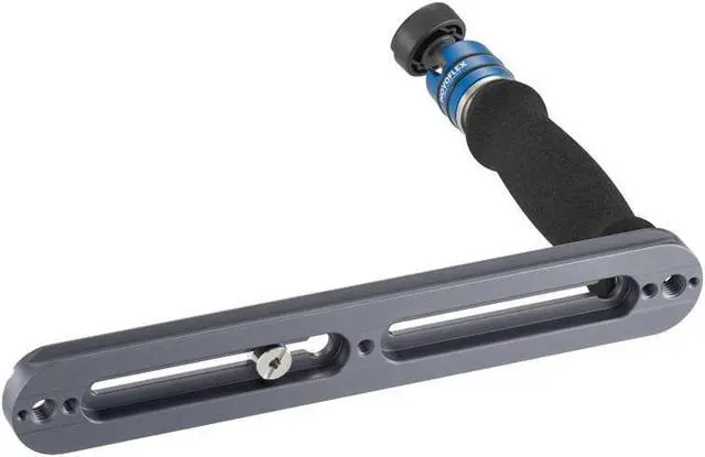 The Flash Bracket is equipped with a comfortable, padded left-handed grip, enhancing user comfort during extended shooting sessions. Its sturdy 9.8" baseplate is designed to accommodate a wide range of camera types, making it a versatile addition to any photography kit.