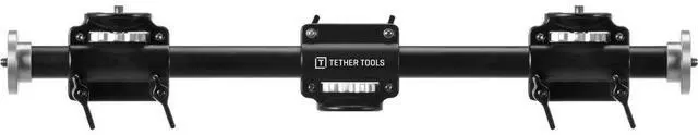 Because of its robust construction and versatile design, the 4 Head Rock Solid Tripod Cross Bar from Tether Tools is a must-have accessory for photographers and videographers. This durable tripod cross bar allows you to mount your Tether Table Aero and camera on the same sturdy support, creating a custom workstation tailored to your specific needs. Designed with a 3/8" thread, the Rock Solid Tripod Cross Bar can be easily attached to a tripod center column or a lightstand using a Rock Solid Baby Ballhead Adapter. The dual-locking heads ensure a secure mount to your tripod, while the silver knurled thread locking plates facilitate quick and easy gear mounting.