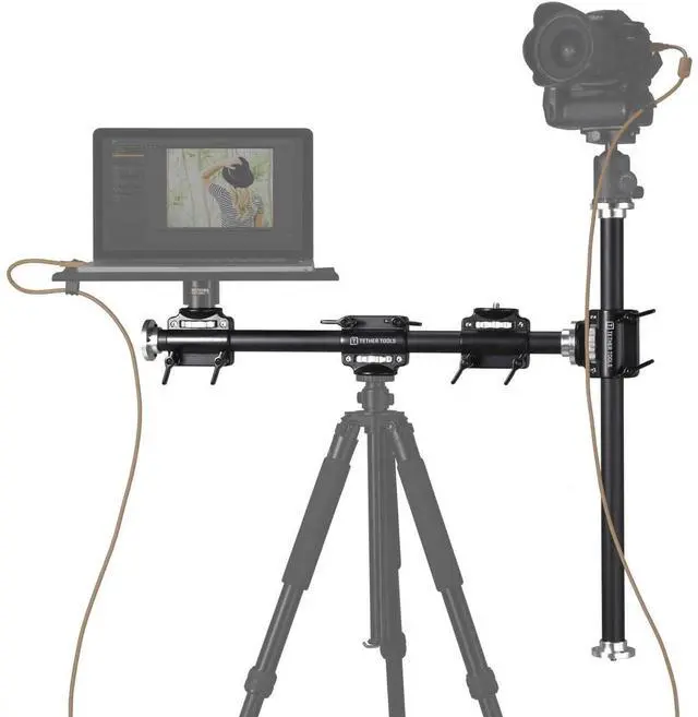 The 4 Head Rock Solid Tripod Cross Bar stands out for its adaptability. It features four 3/8" threads, offering flexibility in mounting a wide range of gear. Whether you need to mount single or multiple cameras, Tether Tables, iPads, tablets, or other accessories, this tripod cross bar has you covered. For photographers who need to adjust the height of their setup, the Rock Solid Tripod Cross Bar can be paired with a Rock Solid Cross Bar Side Arm to create a Tether "T" setup. This configuration is ideal for step and repeat photographers, providing a height variable solution that can be easily adjusted on location.