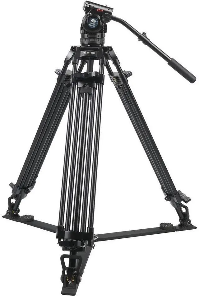 Enhance your videography experience with the BCT-2003 BCT Series 3-Section Aluminum Video Tripod with 75mm BCH-10 BCH Series Fluid Video Head. This high-quality, sturdy tripod is specifically designed to support large video cameras and camcorders, carrying a weight of up to 10kg, making it an essential tool for professional video recordings. Constructed from durable, lightweight aluminum, the BCT-2003 features three-section double tube legs, providing maximum stability for your equipment. The tripod's versatility is highlighted by its adjustable floor spider and center spider, which can be individually adjusted in width to give the necessary stability.