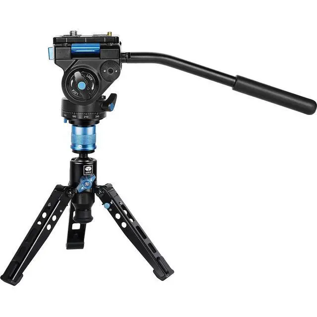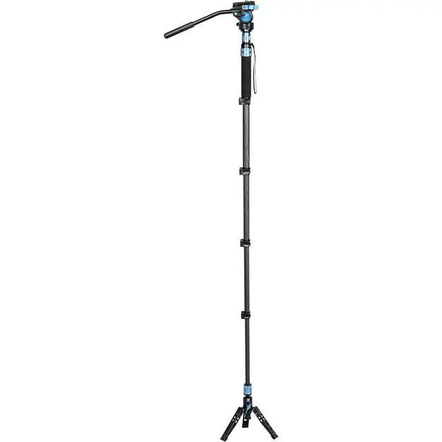 The handle's 360-degree rotation and tilt capability, along with two integrated bubble levels and both 1/4" and 3/8" screws, provide enhanced convenience and precision in your shooting endeavors. This monopod's unique modular design comprises four detachable modules: the mounting plate, main tube section, tripod foot, and rubber foot. These components can be seamlessly combined to form a monopod, an extension rod, or a tabletop tripod, catering to diverse shooting needs such as event coverage, interviews, and high-angle shots. The quick release system offers a significant advantage over traditional locking knob systems, enabling easy detachment of modules and secure locking of the mounting plate, even when handling heavy gear. The monopod features a flip lock mechanism, dividing it into five sections for effortless height adjustment. The upper twist collar is designed with a groove-textured surface, facilitating quick adjustments while shooting. The VA-5 fluid head is equipped with a panorama base, allowing for 360-degree panning to capture a wide range of footage. Additionally, the monopod includes a 360-degree rotatable ring with built-in damping for precise positioning, and an opening for easy strap removal. Offering a tilt capability of 36 degrees in any direction, the monopod provides a wide range of movement options. The tripod foot, constructed from robust aluminum, offers