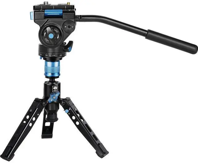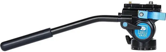The handle's 360-degree rotation and tilt capability, along with two integrated bubble levels and both 1/4" and 3/8" screws, provide enhanced convenience and precision in your shooting endeavors. This monopod's unique modular design comprises four detachable modules: the mounting plate, main tube section, tripod foot, and rubber foot. These components can be seamlessly combined to form a monopod, an extension rod, or a tabletop tripod, catering to diverse shooting needs such as event coverage, interviews, and high-angle shots. The quick release system offers a significant advantage over traditional locking knob systems, enabling easy detachment of modules and secure locking of the mounting plate, even when handling heavy gear. The monopod features a flip lock mechanism, dividing it into five sections for effortless height adjustment. The upper twist collar is designed with a groove-textured surface, facilitating quick adjustments while shooting. The VA-5 fluid head is equipped with a panorama base, allowing for 360-degree panning to capture a wide range of footage. Additionally, the monopod includes a 360-degree rotatable ring with built-in damping for precise positioning, and an opening for easy strap removal. Offering a tilt capability of 36 degrees in any direction, the monopod provides a wide range of movement options. The tripod foot, constructed from robust aluminum, offers