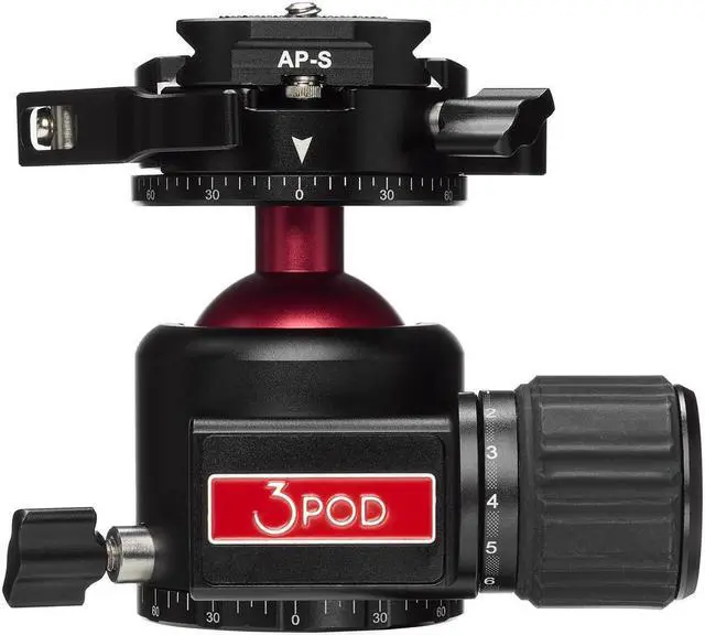 For low angle shots, the center column can be removed entirely, providing freedom from leg angle limitation. The center column can also be reversed, allowing for unique shooting perspectives. The Everest T3 also features 3/8" and 1/4" screw holes on the top of the tripod platform collar, allowing for easy attachment of accessory items. The Everest H2 Ball Head with Arca-Type Quick Release is a feature-rich addition to the 3POD Everest Series. Made from CNC forged, anodized aluminum, it offers a wear-resistant finish and can handle an impressive load of up to 33 pounds.