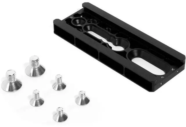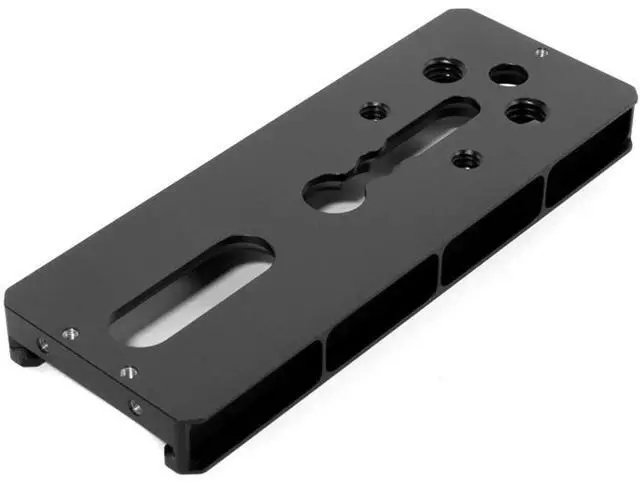 Lightweight camera plate for the MoVI Pro. The adjustable camera plate features multiple 1/4-20 sized holes and a 3/8" slot to allow mounting a variety of camera shapes and sizes.